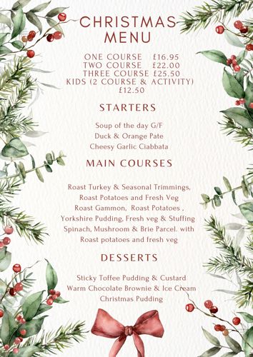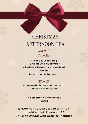 Christmas bookings are available on selected dates up to 21st December you can pick the date below to make your booking, we have a traditional roast option or Festive afternoon tea.